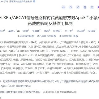 [1]张欣,葛建立,苏坤,等.基于PPARγ/LXRα/ABCA1信号通路探讨芪黄疽愈方对ApoE...