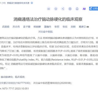 [1]武萌萌,苏志伟,袁子薇,等.消癥通络法治疗脑动脉硬化的临床观察[J].中华中医药学刊,202...