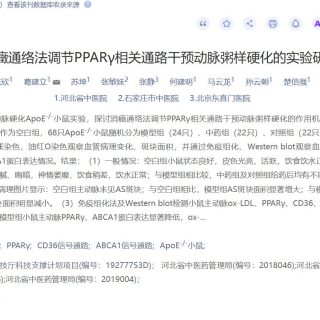 [1]张欣,葛建立,苏坤,等.消癥通络法调节PPARγ相关通路干预动脉粥样硬化的实验研究[J].四...