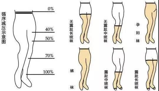 根据曲张病变部位的不同,选择不同长度及款式。中筒袜(膝下)、长筒袜(及大腿)较常用。