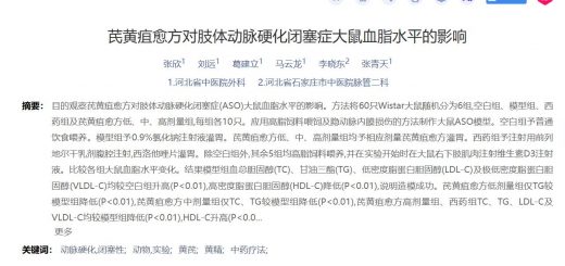 • 芪黄疽愈方对肢体动脉硬化闭塞症大鼠血脂水平的影响