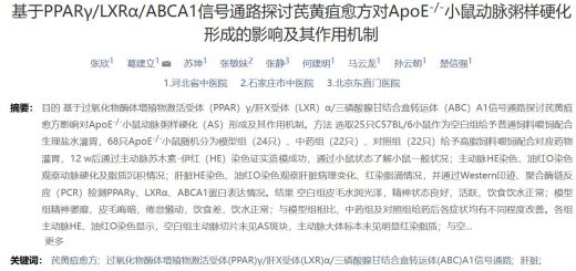 基于PPARγ/LXRα/ABCA1信号通路探讨芪黄疽愈方对ApoE-/-小鼠动脉粥样硬化形成的影响及其作用机制